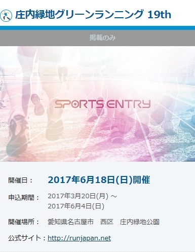 庄内緑地グリーンランニング 19th 愛知県 名古屋市 10km 52:49 2017年6月18日 |