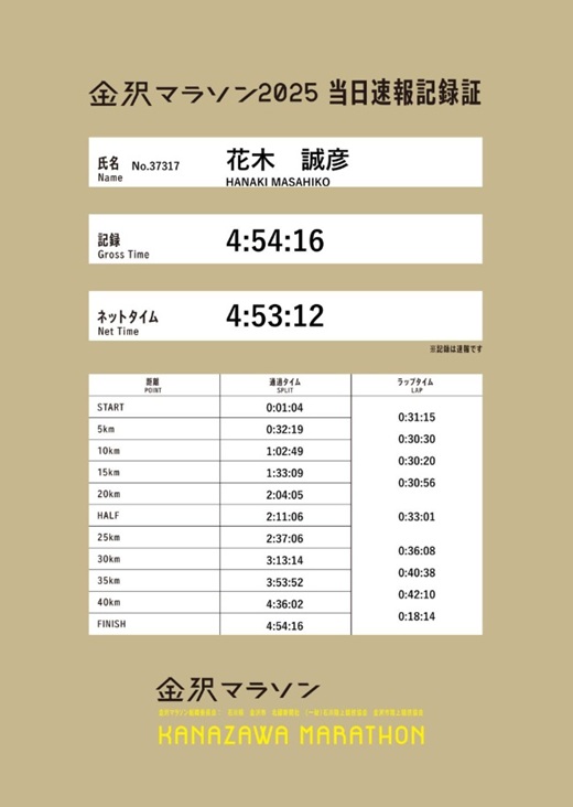 さすが人気大会。豪華なゲスト、充実したエイドは規格外。外国人ランナーも多く、前日から大賑わい。終始シャワーランはいいが、時折強くなる雨足に体温が奪われて震えた。変化に富んだ飽きさせないコースにも関わらず、30キロさえ満足に走れず情けない。金沢は和洋折衷が洗練されて、観光にはもってこい。